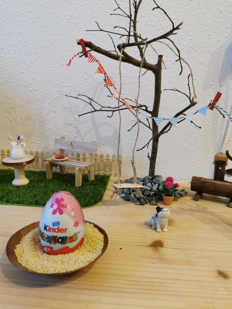 Da der allererste Wichtelbesuch meinem Sohn so große Freude bereitet hat, habe ich mich entschieden auch im Frühling zur Osterzeit wieder eine Wichteltüre aufzubauen. Ganz ähnlich wie im Winter habe ich täglich Veränderungen an der wichtelulisse vorgenommen, so dass sichtbar wurde was der Wichtel in der Nacht so macht. Natürlich kommunizierte er wieder über Wichtelbriefe, die einen wichtigen Bestandteil des Wichtelbesuches für meinen Sohn darstellen.