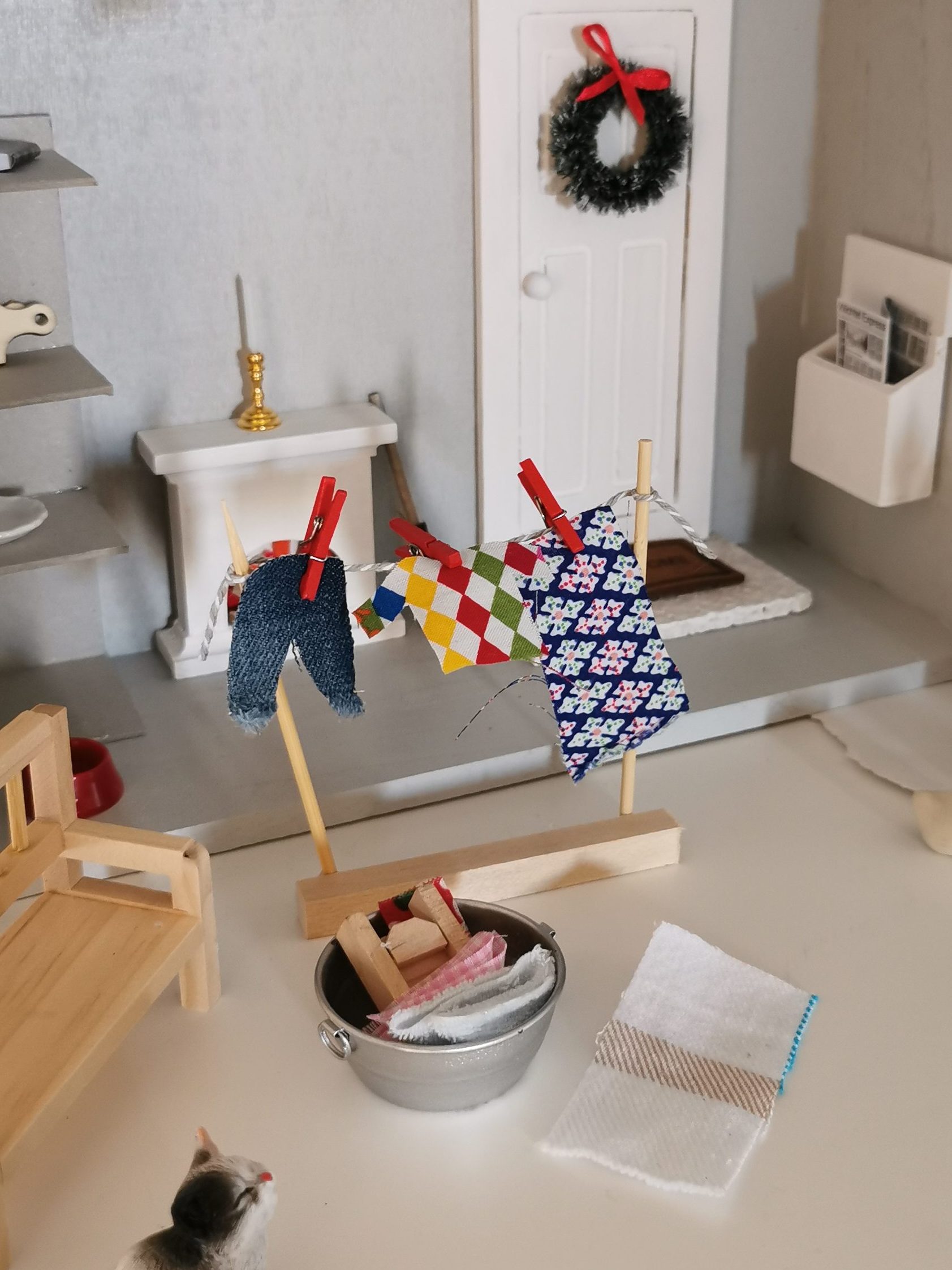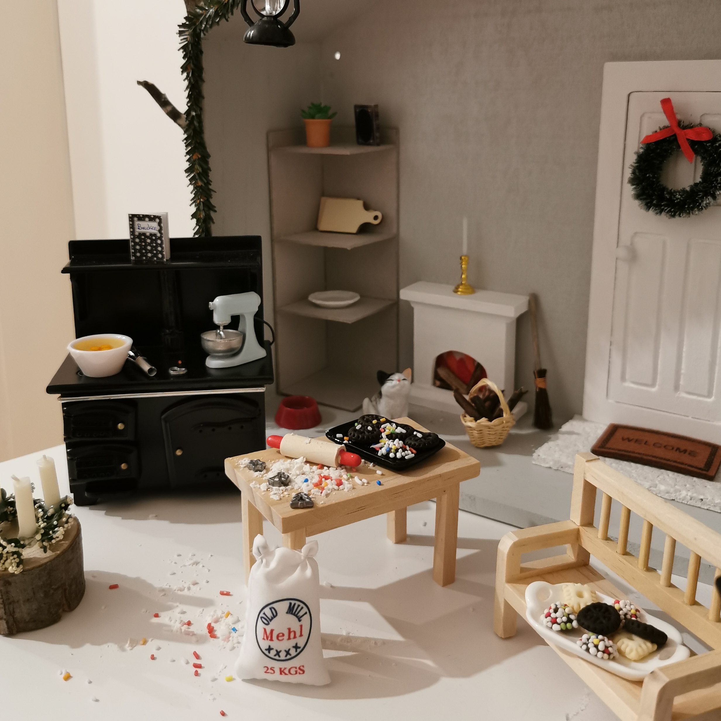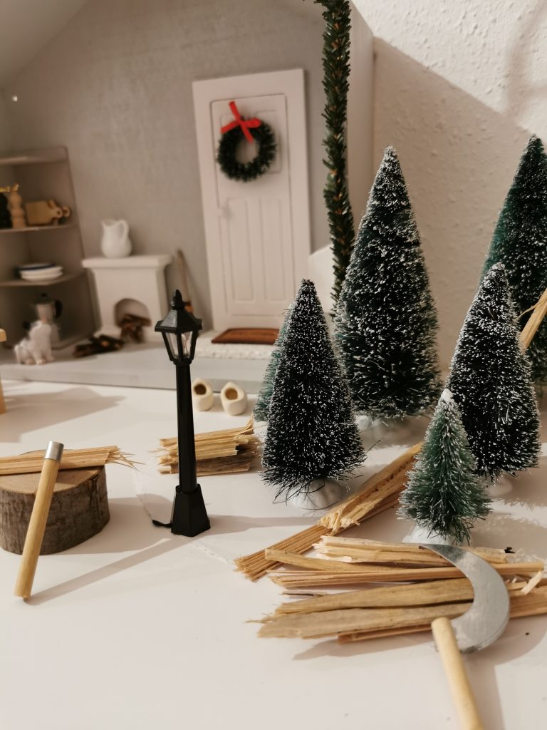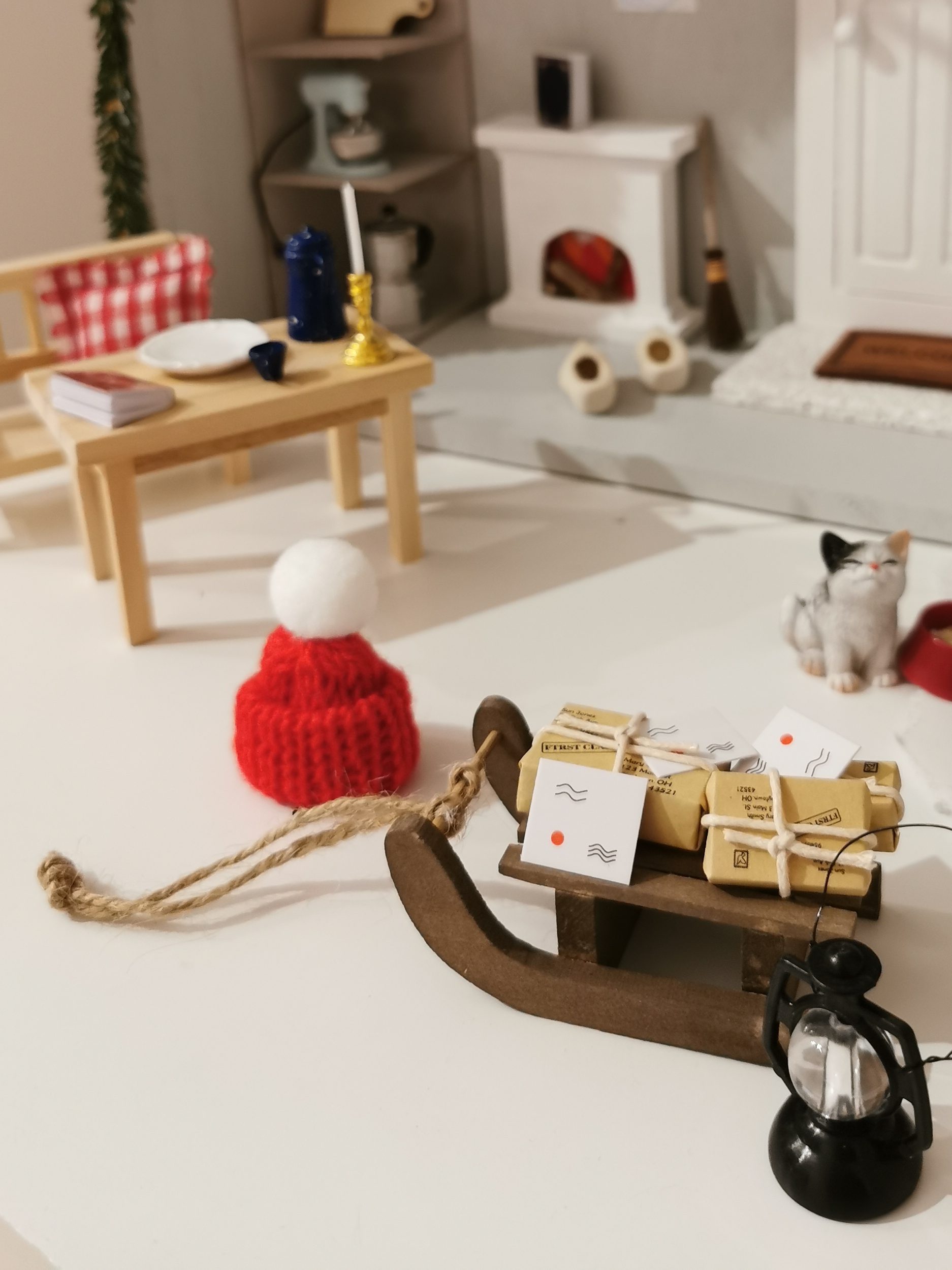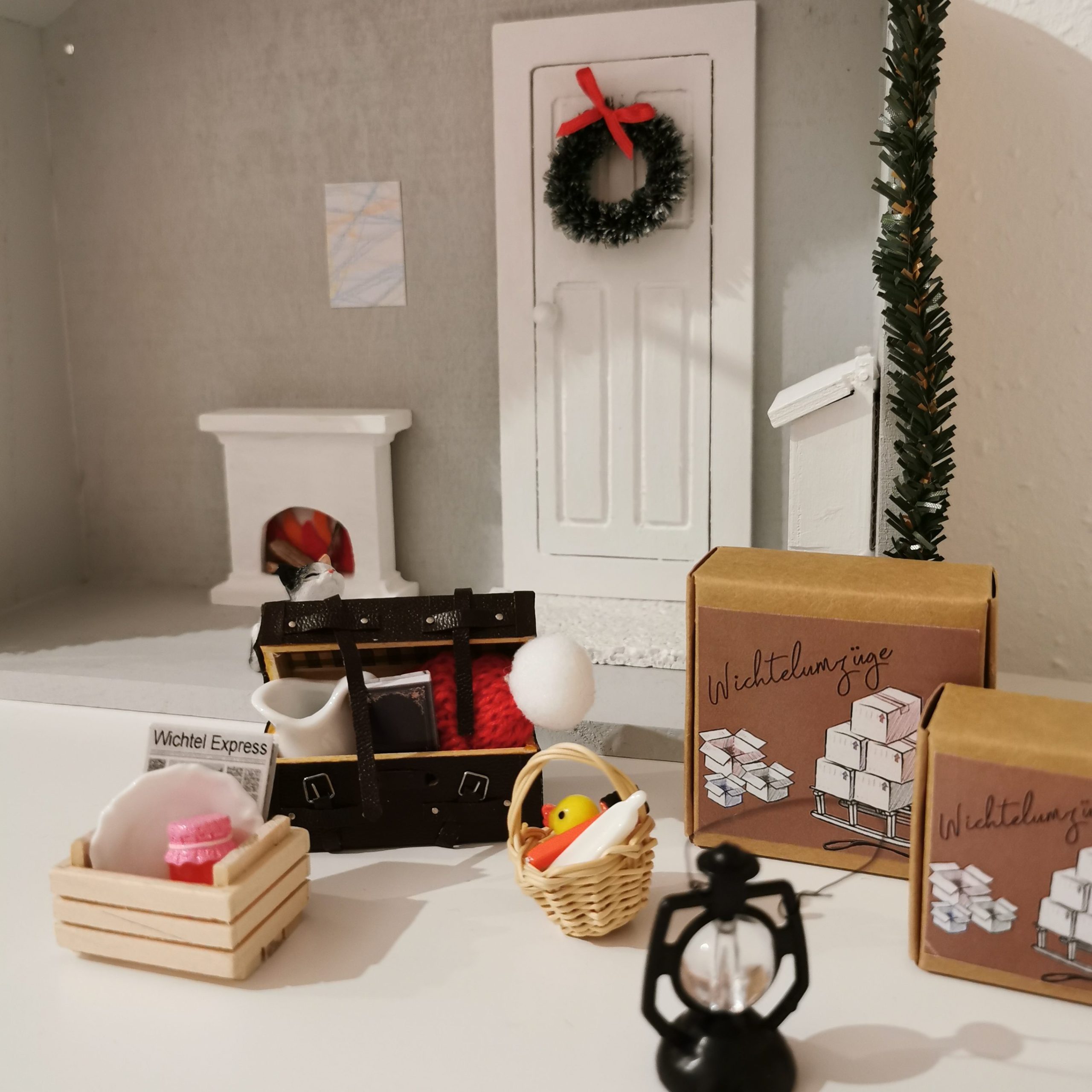 Auch ein Wichtel hat unter Umständen eine ganze Menge Utensilien und Habseligkeiten dabei und so richtet er sich im Lauf der ersten Dezembertage erstmals heimelig bei uns ein. Ich habe mich dazu entschieden jeden Tag die Szenerie ein klein wenig zu verändern, damit sichtbar wird, dass der Wichtel des Nachts aktiv war. Aber was macht so ein Wichtel denn überhaupt alles wenn wir schlafen?